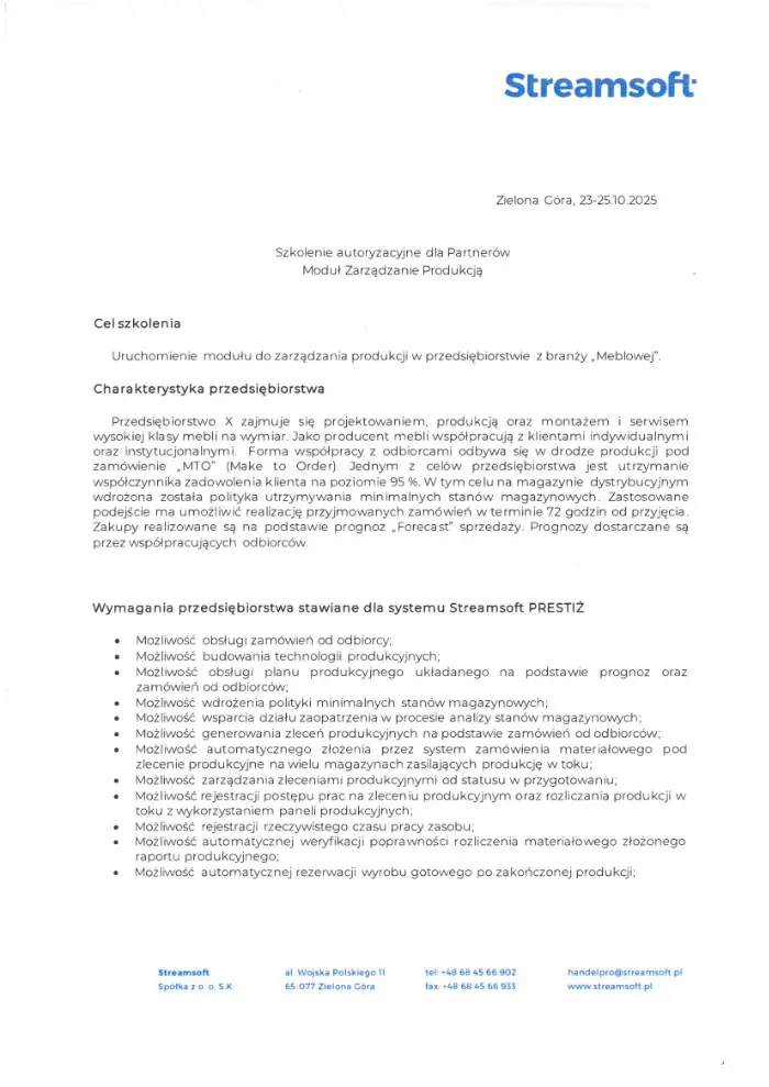 Certyfikowane wdrożenia i integracje Streamsoft Prestiż – optymalizacja procesów produkcyjnych, redukcja kosztów i pełna kontrola realizacji.